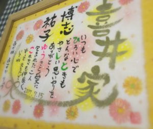 201708/06 還暦のお祝いとご両親へ感謝の贈り物 ブログ 還暦のお祝い色紙とご両親様に感謝の贈り物お書きしました(*´∀`)♡。 還暦のお祝い色紙は赤トンボとご趣味の卓球のイラストお描きしました。 ご両親様に感謝の贈り物はガーベラお描きしました。 感謝です。幸せ祈ってます(*´∀`)。