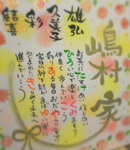 色紙の家族の筆文字お名前ポエムと二十歳のお祝いポエムお書きしました(*´∀`)。