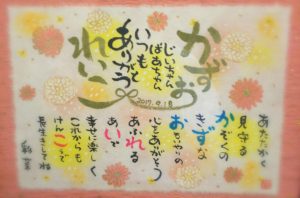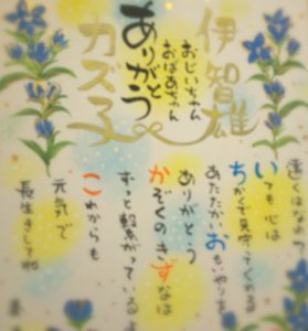 敬老の日の筆文字お名前ポエムをたくさん書かせていただいています。幸せ願っています。