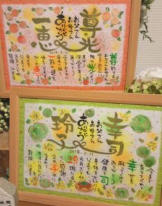 米寿と結婚式のお祝いに筆文字お名前ポエムお書きさせていただきました。幸せの輪が広がりますように♡。
