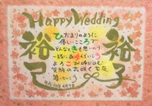 結婚式のウェルカムボードお書きさせていただきました。春の桜お描きさせていただきました。桜大好きです。ありがとうございます。
