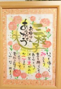 母の日の筆文字お名前ポエムお書きさせていただきました。ラインストーン付でより華やかさが増しました(^^)。気に入っていただけますように。