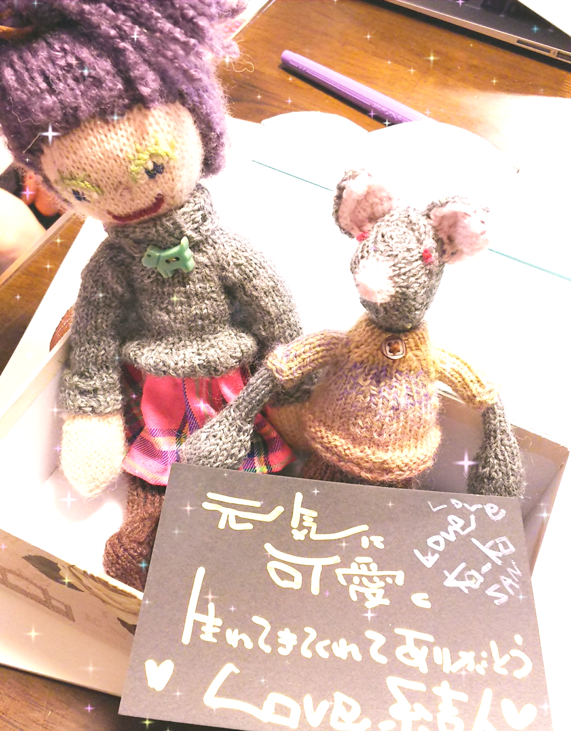 ひさこさんの手づくりのあみぐるみです。かーこさんのお孫さんへ♡。