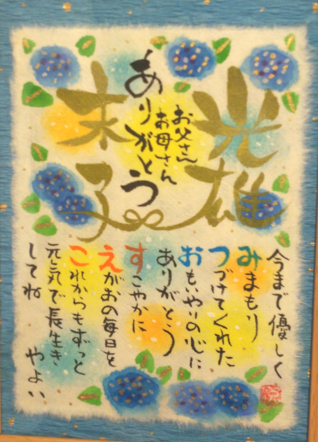 父の日にご両親様にお書きさせていただきました。感謝の心が届きますように。