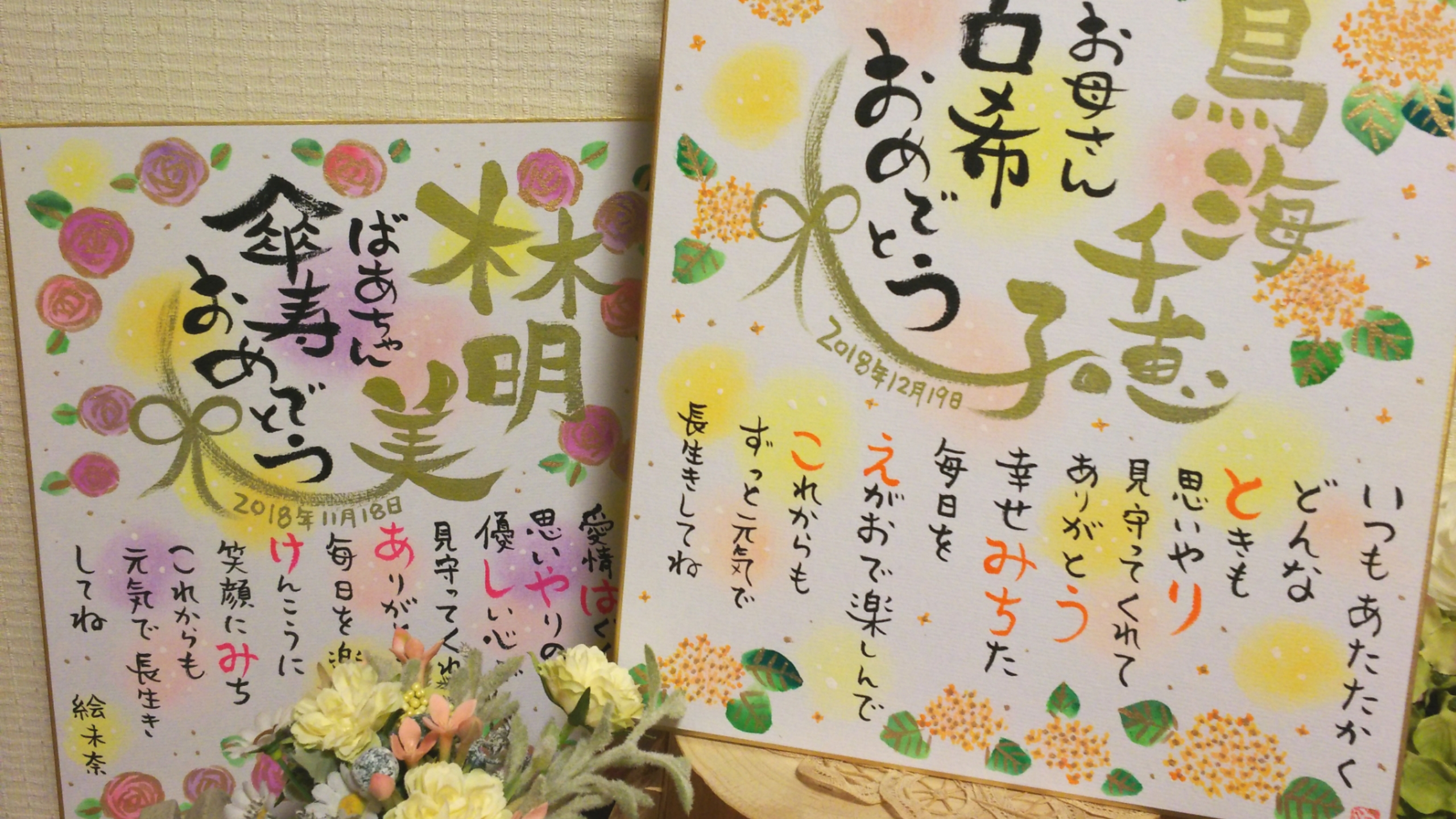 古希と傘寿のお祝いもお書きさせていただきました。とてもうれしいです。お祝いの席で喜んでもらえますように。