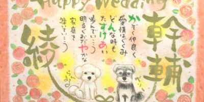結婚式のお祝いに筆文字お名前ポエムお書きさせていただきました。 ワンちゃんの似顔絵つきです。喜んでいただけますように。 ありがとうございます。 こうして筆文字のお仕事をさせてもらえるようになっ …