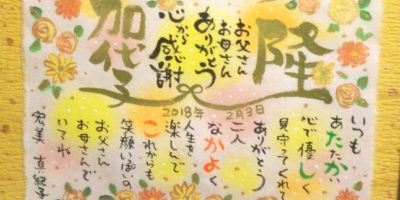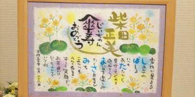 傘寿のお祝いに筆文字お名前ポエムお書きさせていただきました。傘寿は紫で上品に仕上げさせていただきました。気に入っていただけますように。 今日は車の運転中、江戸時代の町人文化のことを考えてました(^^)。江戸 …