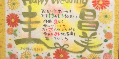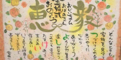 金婚式のお祝いに筆文字お名前ポエムお書きさせていただきました。素敵なお祝いになりますように。 米寿のお祝いもお書きしました(^^)/。気に入っていただけたらうれしいです。お正月にお渡しとのことです。 ありがとうございまし …